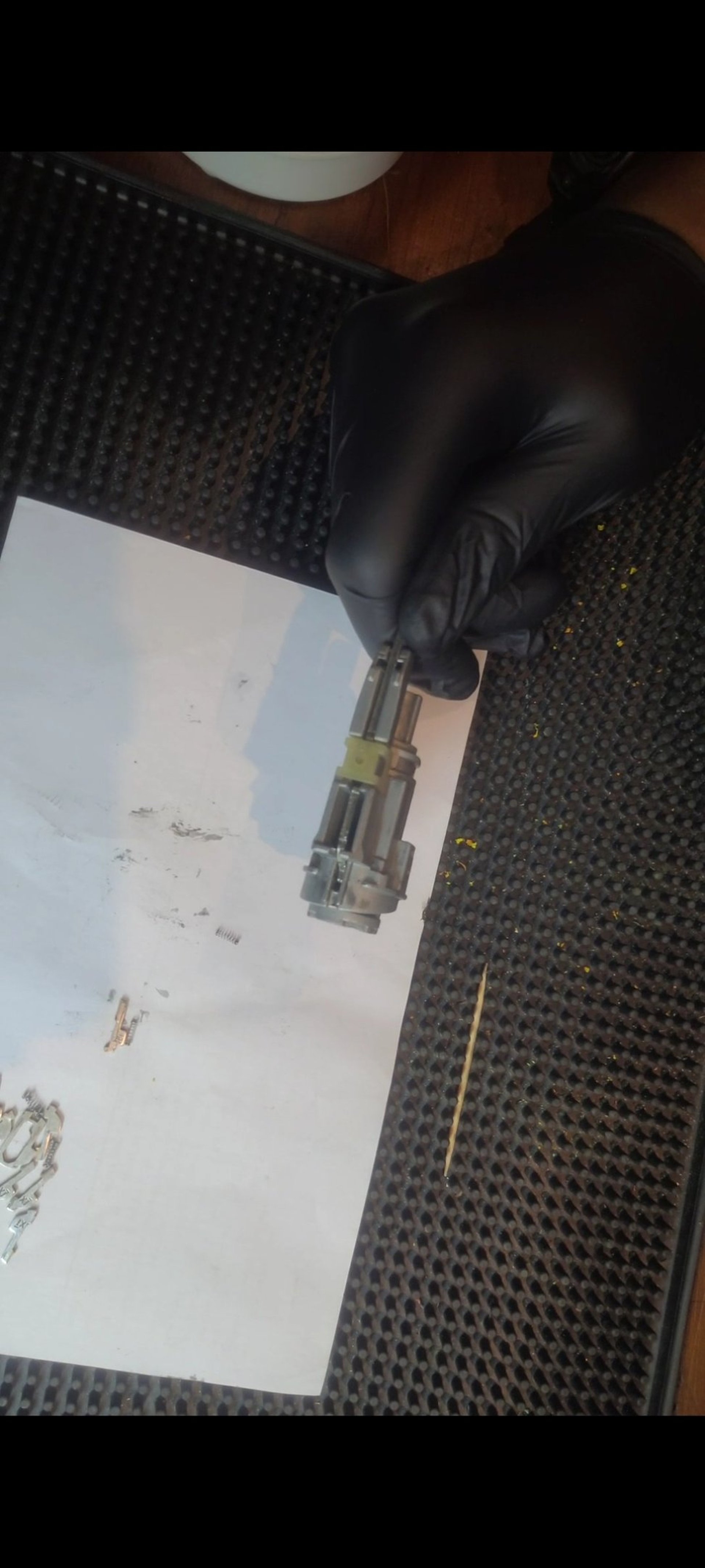 Reconstrucción Interna: Desarmamos el cilindro, limpiamos el mecanismo y reemplazamos las guardas desgastadas por componentes nuevos.